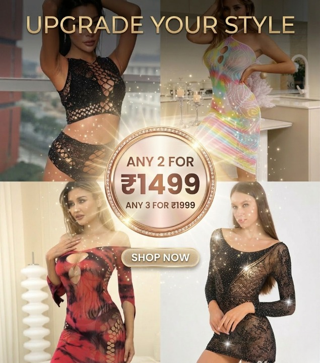 Regular price Rs. 899.00Regular priceUnit price / perRs. 1,649.00Sale price Rs. 899.00Make a powerful style statement with this Black Statement Fishnet Body-Hugging Lingerie Dress, designed to showcase confidence and bold elegance. Crafted from high-quality fishnet mesh fabric with excellent stretch, this lingerie dress contours seamlessly to your body while remaining lightweight and comfortable. The classic black shade enhances its timeless appeal, making it perfect for special nights and intimate occasions.